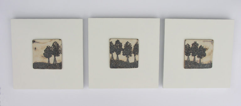 Using porcelain clay I create contemporary atmospheric wall pieces and vessels inspired by trees, fields and countryside surrounding my home in Derbyshire. My initial sketches are transferred onto the soft clay with texture, following a bisque firing resists, oxides and crackle glazes are applied to add detail, shading and contrast to the piece. I also produce a range of stylish jewellery, all formed by hand then encased in jewel coloured glazes and combined with silver, copper and glass.