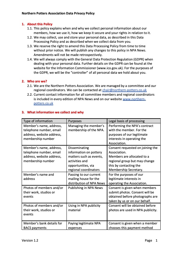 The aim of the NPA is to encourage and support artists in the production of sculptural, functional, fine art and decorative studio pottery in all its forms throughout the North of England